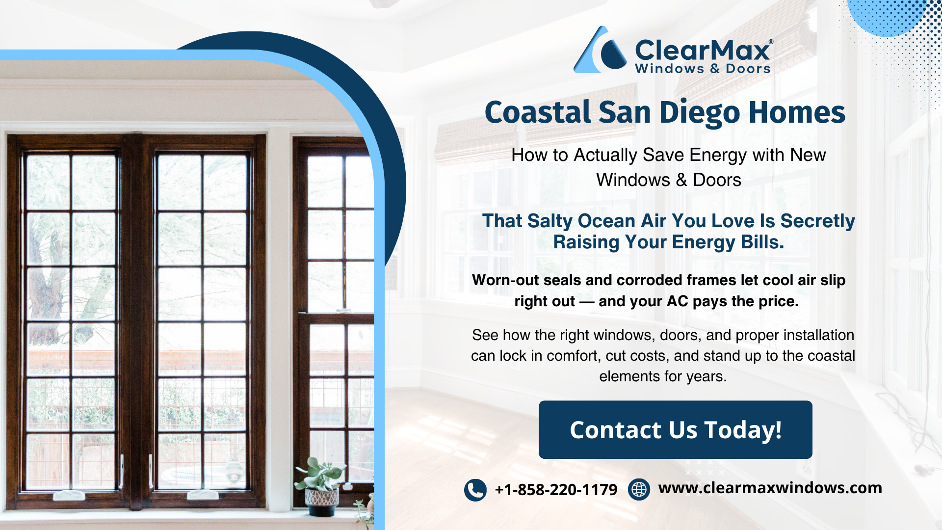 That salty ocean air you love is secretly raising your energy bills. Worn-out seals and corroded frames let cool air slip right out — and your AC pays the price. See how the right windows, doors, and proper installation can lock in comfort, cut costs, and stand up to the coastal elements for years.
