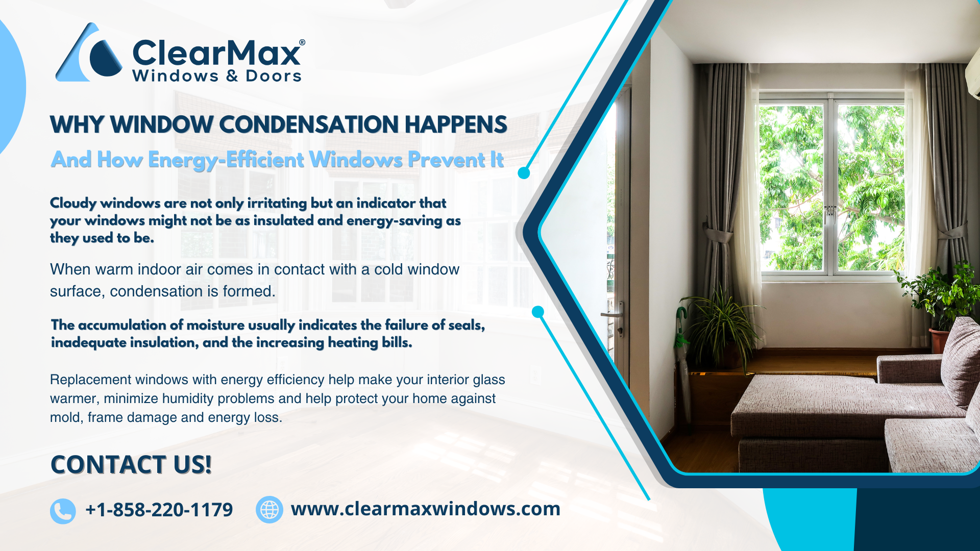- Your replacement of the energy efficient windows with those used in ClearMax not only minimize the chances of condensation, but also increases the level of comfort, lowers energy consumption and safeguards the long term well being of your home.